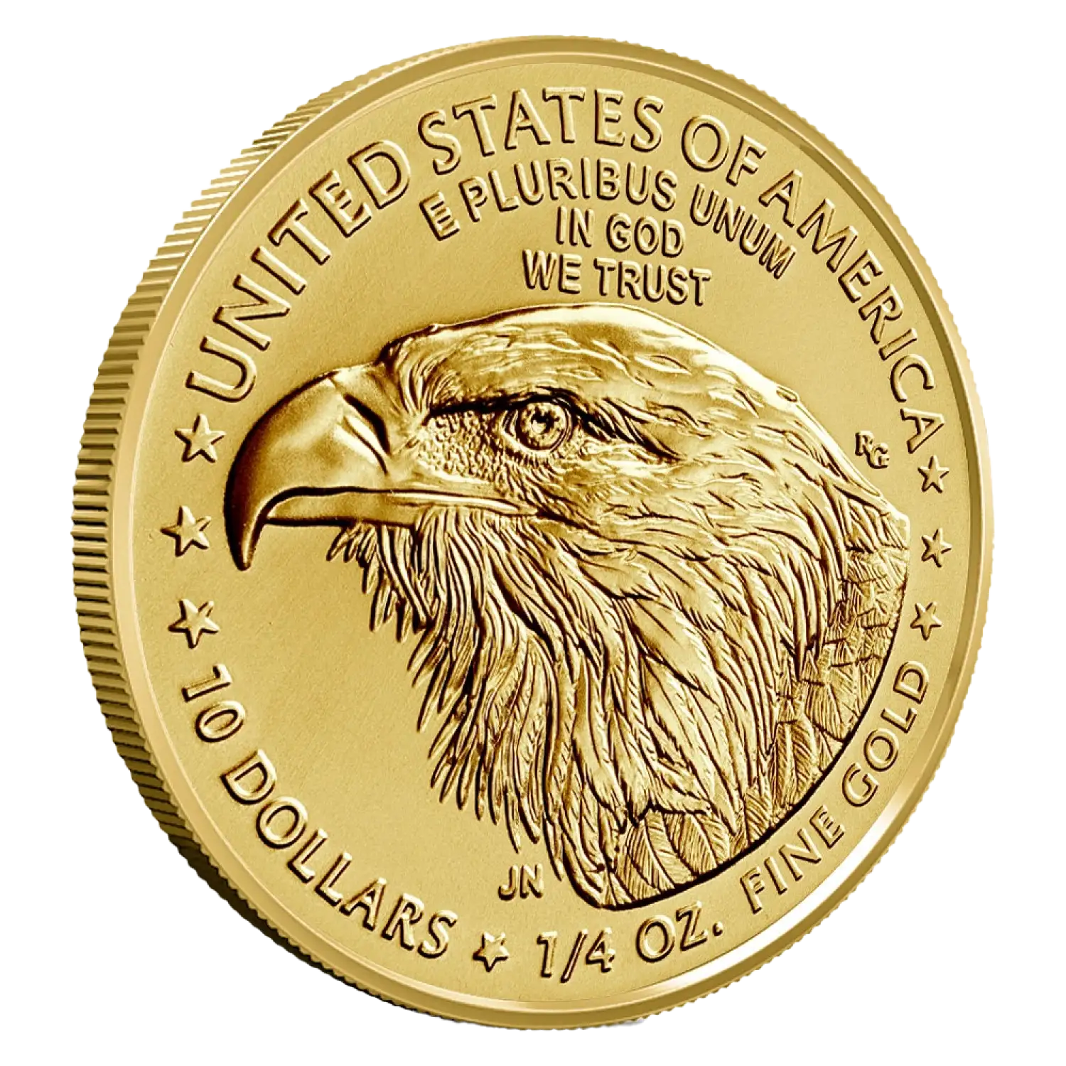 Minted from 91.67% (22-karat) gold, each 1/4 ounce Gold Eagle features the stunning designs that have made this coin an enduring favorite. The obverse side depicts the iconic image of Lady Liberty, a symbol of freedom and strength, holding a torch and an olive branch. The reverse side showcases a family of majestic American eagles, reinforcing the symbolism of unity and protection. With its elegant design, the 1/4oz Gold Eagle is not only a valuable asset but also a collector's delight.